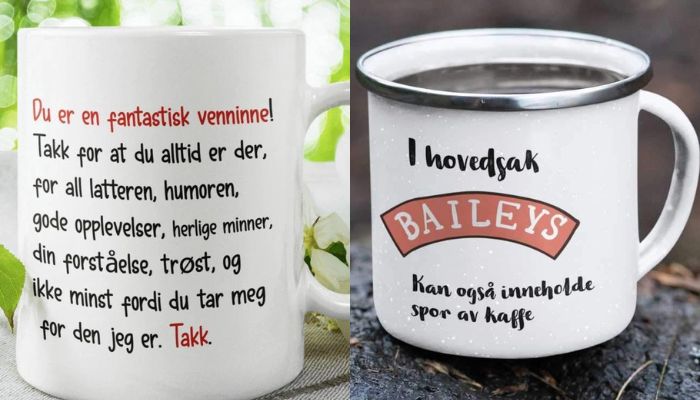 På den andre siden av kruset er det en illustrasjon av to venninner, og du velger selv hvilke navn som skal stå over venninnene.