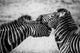 Nydelig plakat av tre sebraer med flott himmel og skyer som bakgrunn.