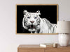 Posteren har mørk bakgrunn og en hvit tiger med krystallklare blå øyne. Blir veldig stilig på en bildevegg sammen med våre andre plakater fra samme serie.