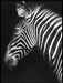 Et nydelig motiv av en Zebra. Plakaten er med svart bakgrunn.