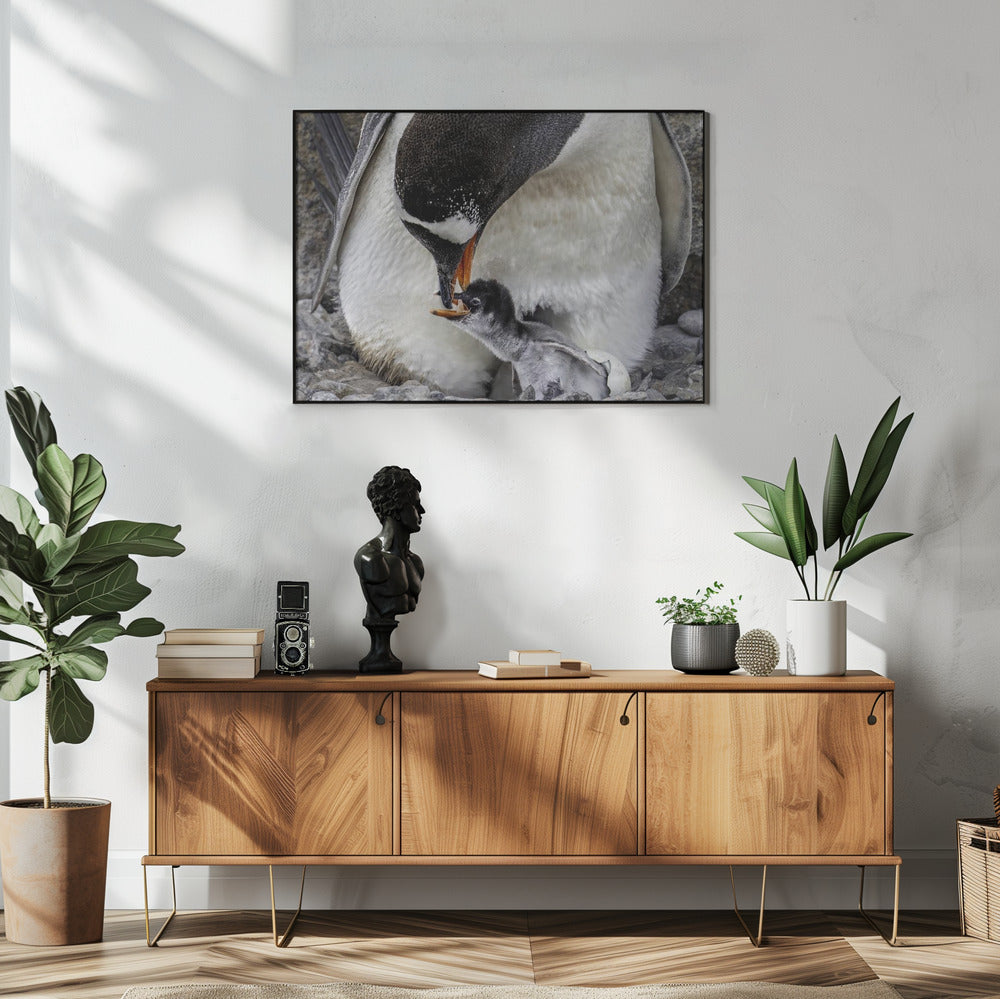 Gentoo penguin feeding her new born baby av Gary Hu.