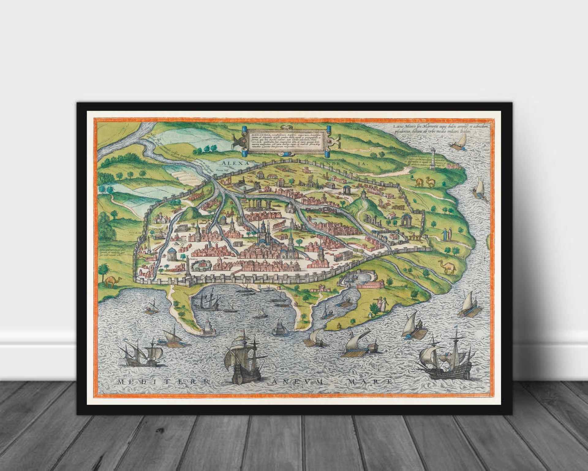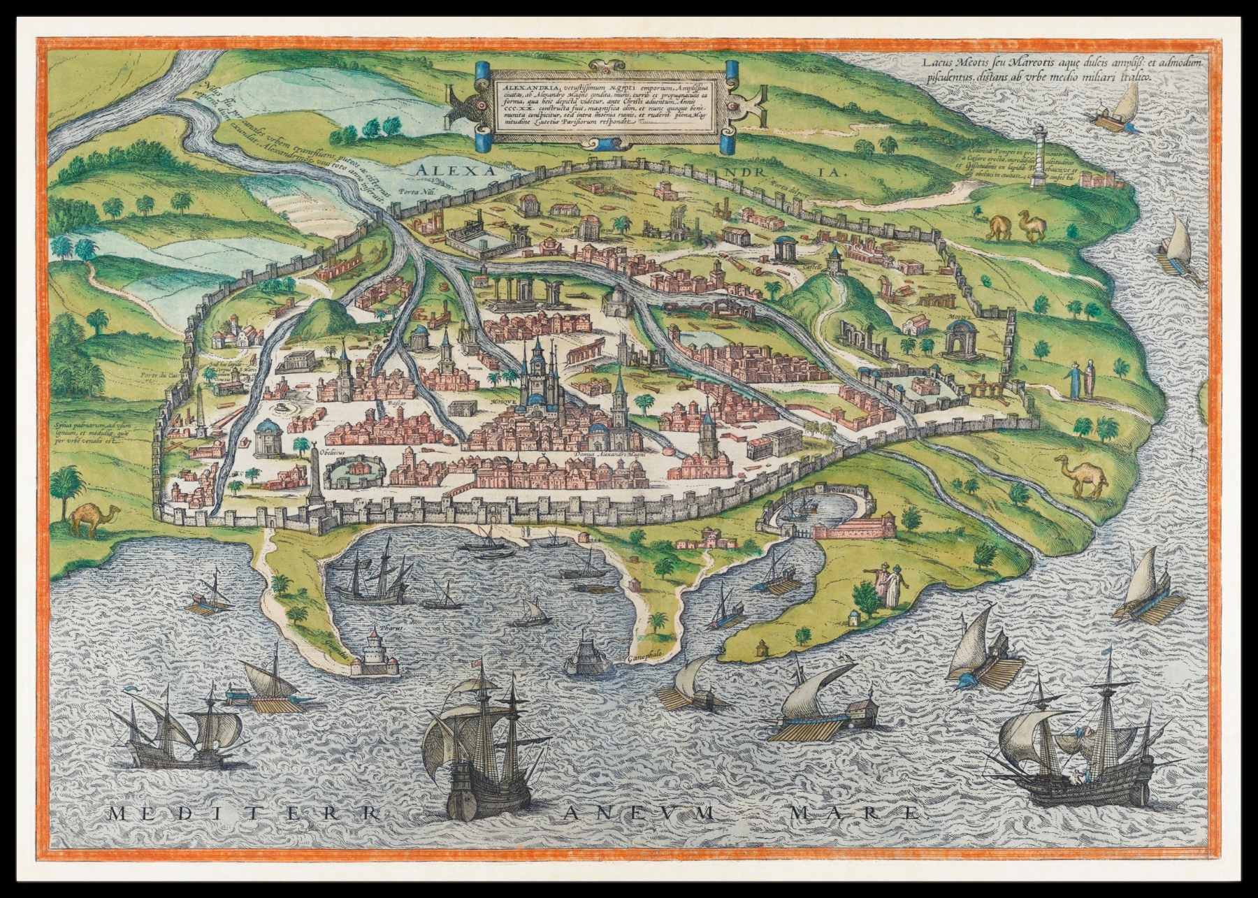 Poster av kart over Alexandria av Georg Braun fra 1575.
