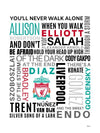 Ordene på plakaten er satt sammen av ord fra sangen "You never walk alone" og populære spillere på Liverpool i 2023/2024.