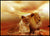 Flott plakat av en hann og en hunnløve med solnedgang i bakgrunnen.