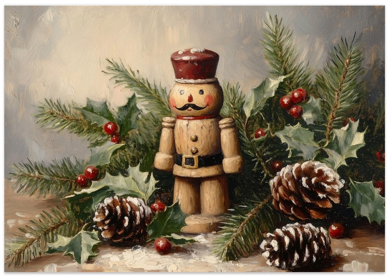 Nutcracker and Pinecones av Jolly and Dash. Kan kjøpes som plakat eller lerret.