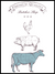 Stilfull plakat til kjøkkenet. Denne viser også inndelingen av kroppsdelene til hønen, grisen og kua.