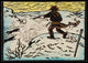 Gammeldags juleplakat med teksten "glædelig jul" og et barn foran kirken.