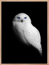 Posteren har mørk bakgrunn og en kritthvit ugle med iskalde blå øyne. Blir veldig stilig på en bildevegg sammen med våre andre plakater fra samme serie.