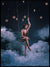Magisk fotokunstplakat av kvinne som henger på en husker mellom skyer og stjerner.