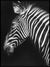 Et nydelig motiv av en Zebra. Plakaten er med svart bakgrunn.