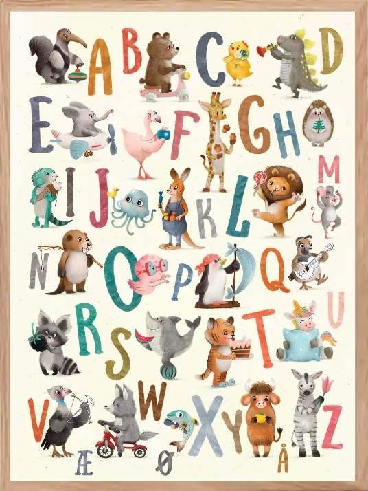 En søt alfabetplakat til de minste. Plakaten er både dekorativ og fin samtidig som den er lærerik for de små håpefulle som skal lære alfabetet.