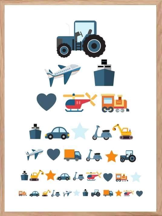 En fin plakat med diverse kjøretøy til små barn som ønsker noe fint på veggen.