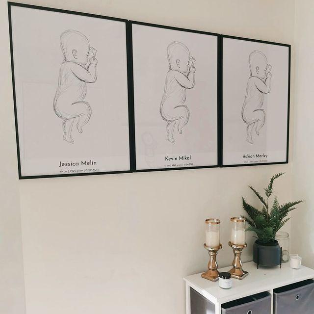 Vår fødselsplakat er unikt tilpasset ditt barn. Vi har laget varianter som både passer godt som et interiør i stuen eller som en søtt innslag på barnerommet.