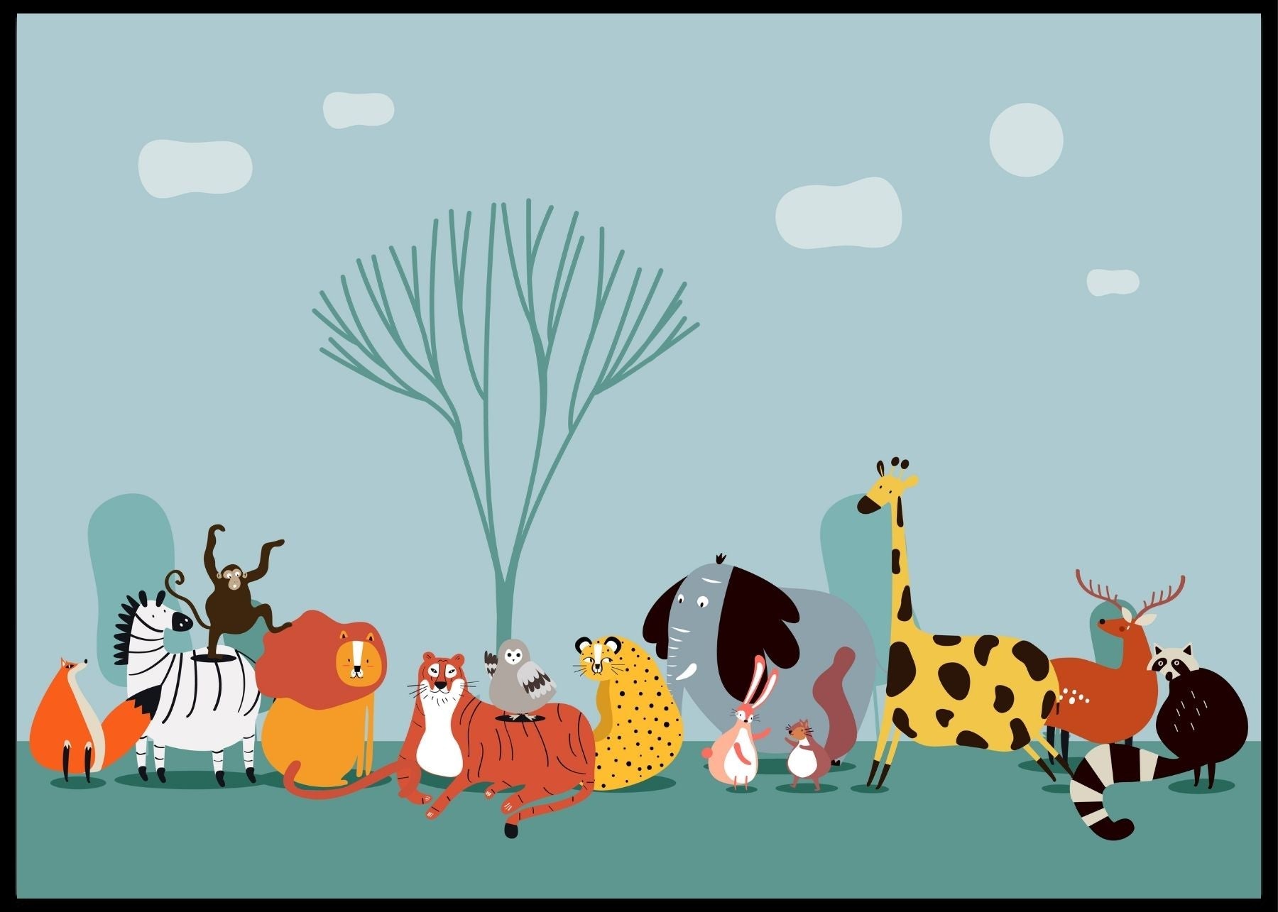 Supersøt plakat med dyrene i Afrika, til barnerommet.