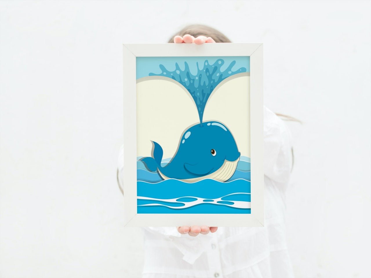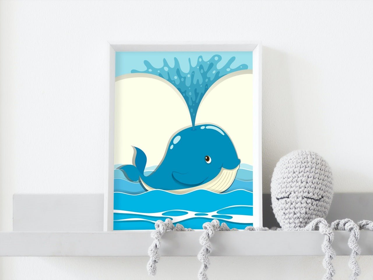 Mange barn er glade i dyr, så hvorfor ikke pynte opp barnerommet med plakat av denne hvalen?