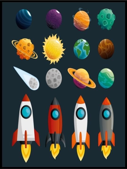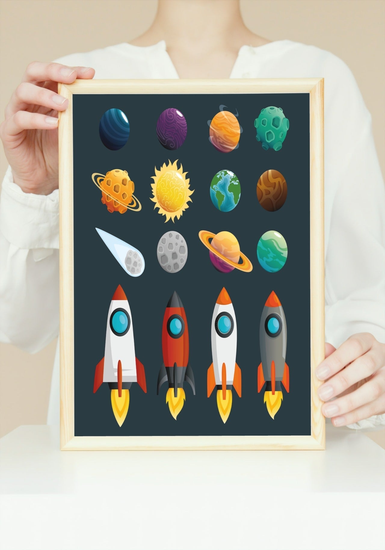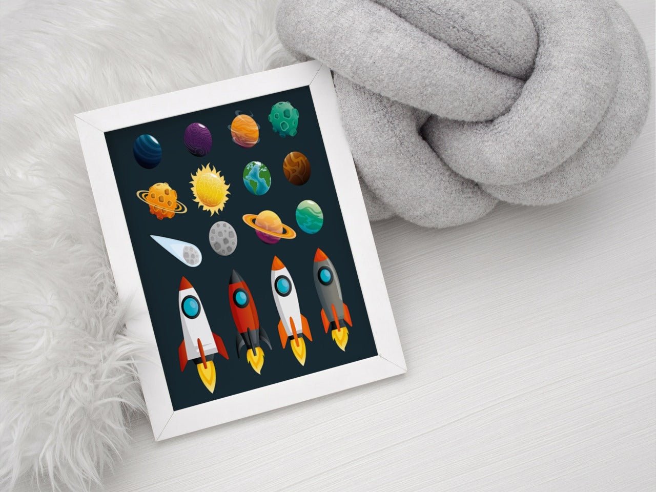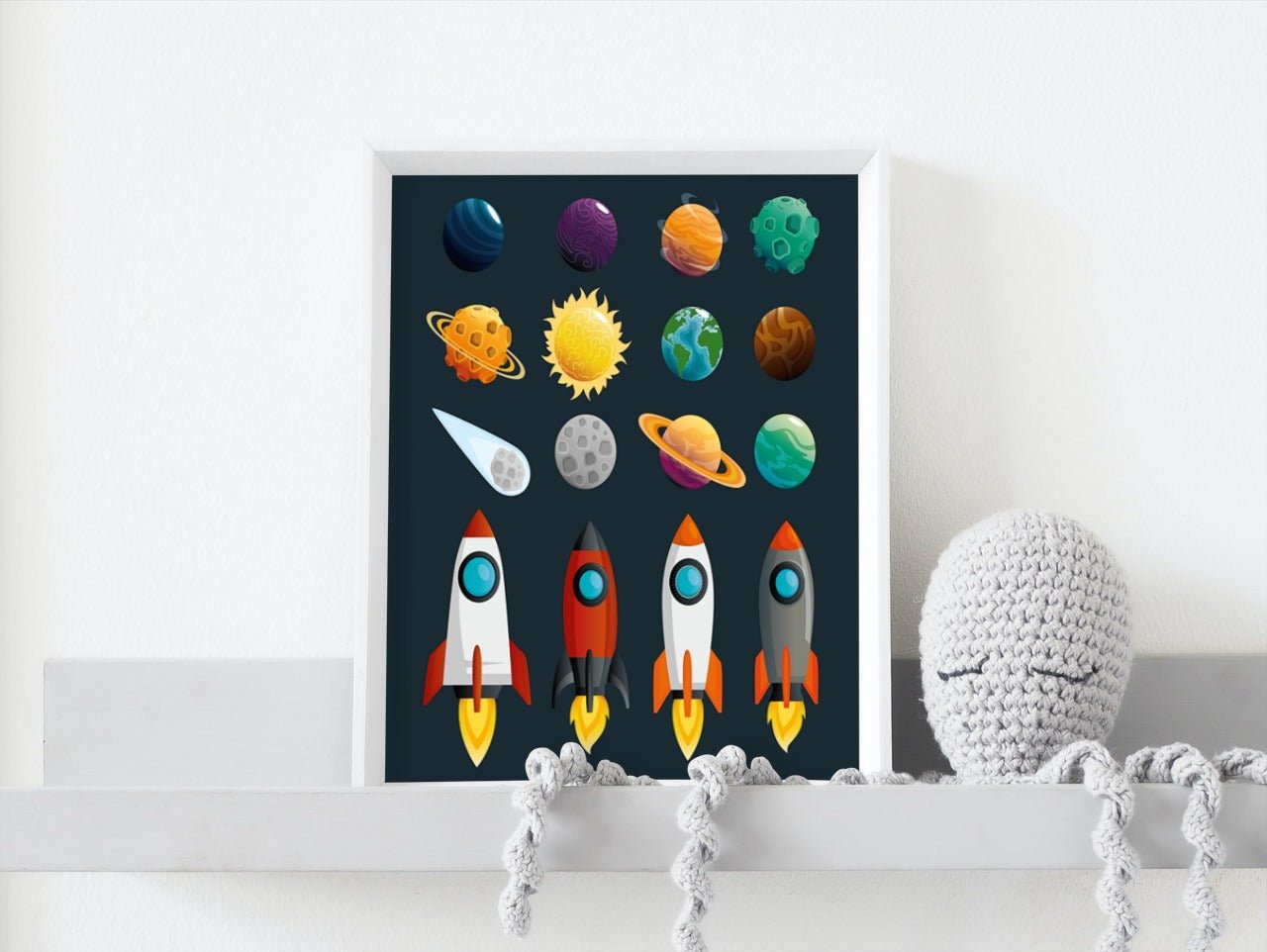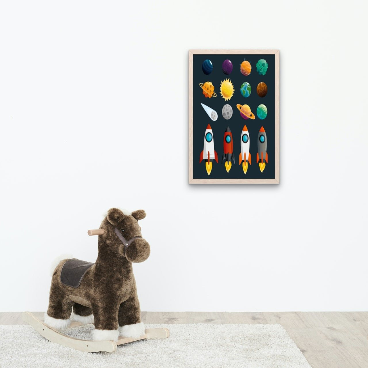 Fin plakat til barnerommet av raketter og planeter. Kombiner gjerne sammen med våre andre verdensromplakater for å lage en stilig bildevegg på barnerommet.