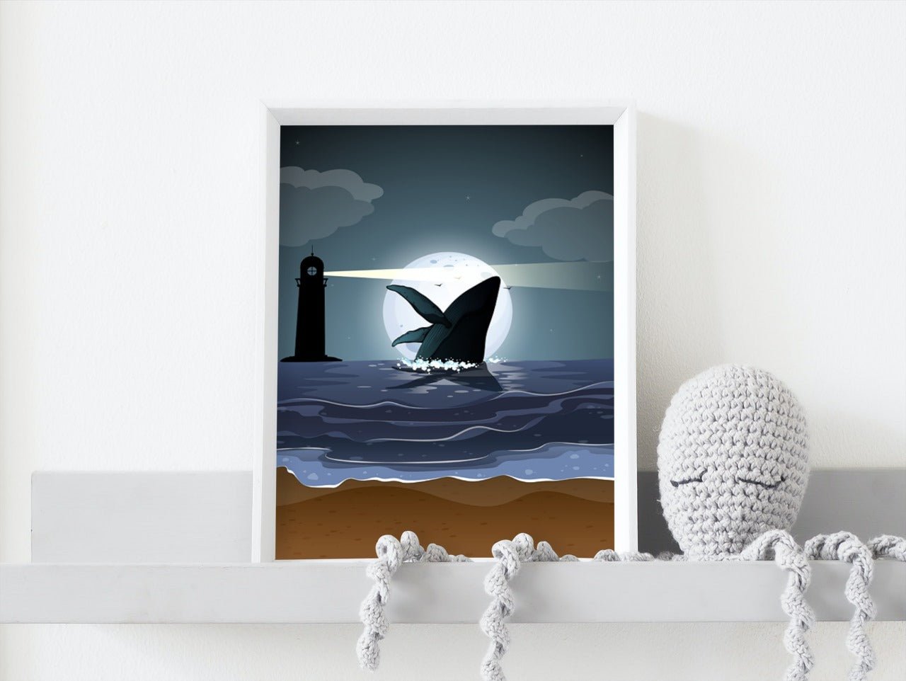 Mange barn er glade i dyr, så hvorfor ikke pynte opp barnerommet med plakat av denne hvalen? Kombiner gjerne med andre plakater og lag deg en flott bildevegg på barnerommet.
