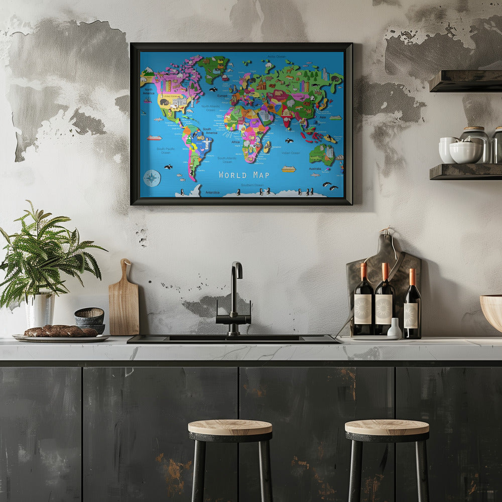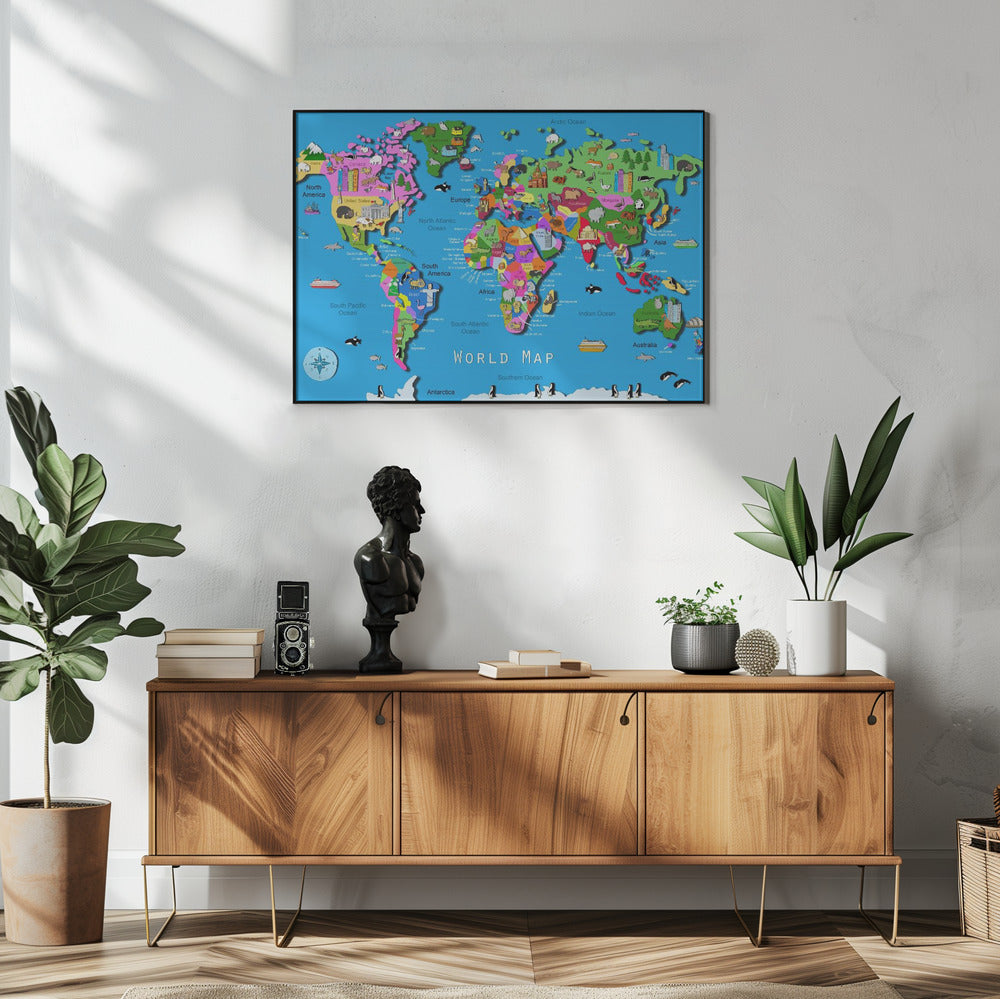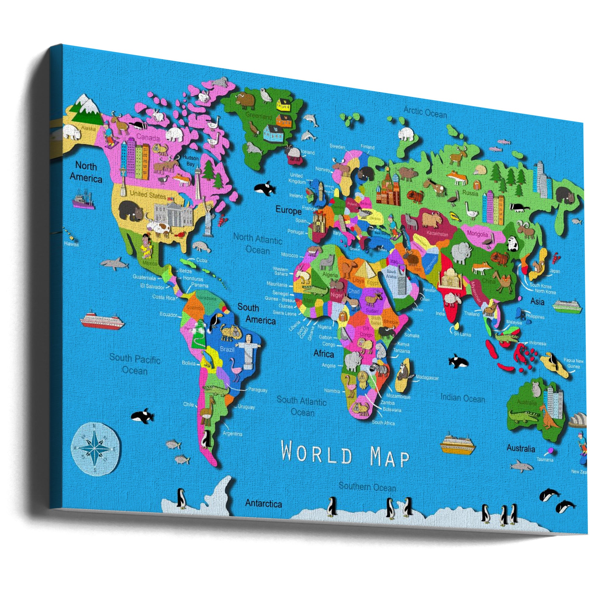 Illustrated World Map with Countries and Continents by Carla Daly av Carla Daly.