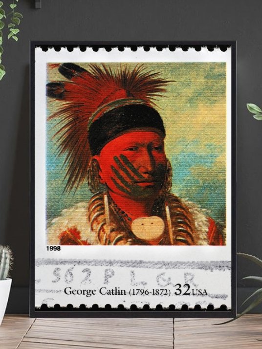 Kul plakat av indianer høvdingen White Cloud, utgitt som frimerke i USA.