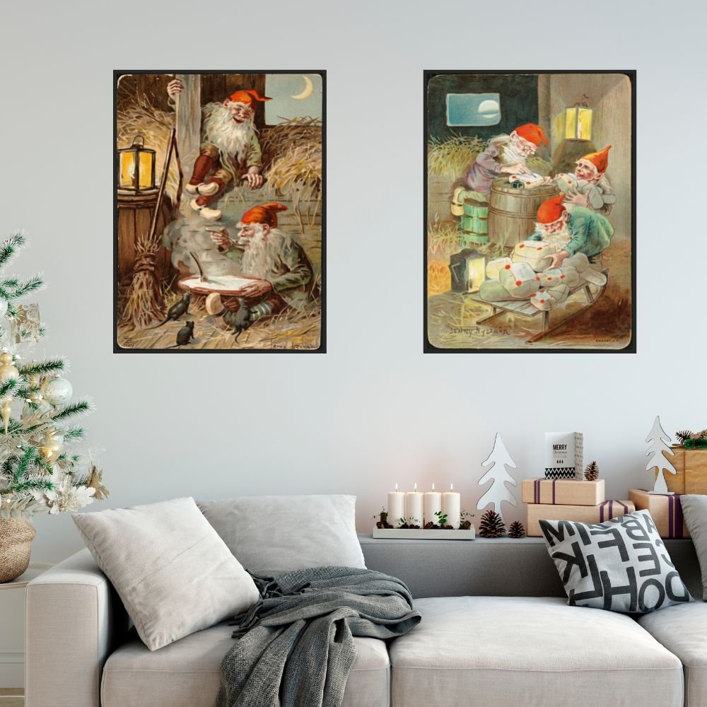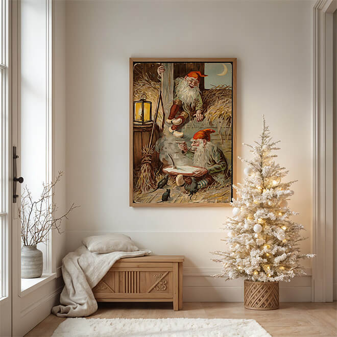 Nissene spiser grøt - Retro juleplakat - Jenny Nystrøm