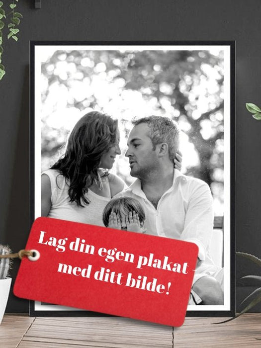 Når du lager din egen plakat kan du velge mellom størrelsene 21x30, 50x70, 70x100 eller 100x150. Husk at vi selger rammer separat, og dersom du også kjøper ramme hos oss så monterer vi bildet i rammen for deg :)