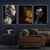 En mørk og innbydende bildevegg med noen av våre flotteste motiver fra serien Black Gold. Motivene er håndplukket fordi de skaper et unikt uttrykk sammen. På disse plakatene har vi valgt gullramme.