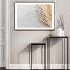 • Etter printing spennes lerretsduken på en kraftig blindramme. For de fleste formatene bruker vi en 40mm tykk ramme, slik at det oppnås en flott dybde-effekt når rammen henges på veggen. Deretter monterer vi på oppheng med stålvaier og kunstverket ditt kan henges rett på vegg.