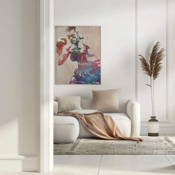 • Etter printing spennes lerretsduken på en kraftig blindramme. For de fleste formatene bruker vi en 40mm tykk ramme, slik at det oppnås en flott dybde-effekt når rammen henges på veggen. Deretter monterer vi på oppheng med stålvaier og kunstverket ditt kan henges rett på vegg.