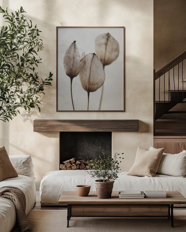 • Etter printing spennes lerretsduken på en kraftig blindramme. For de fleste formatene bruker vi en 40mm tykk ramme, slik at det oppnås en flott dybde-effekt når rammen henges på veggen. Deretter monterer vi på oppheng med stålvaier og kunstverket ditt kan henges rett på vegg.