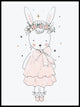 En nydelig plakat til barnerommet av en håndtegnet kanin med ballonger. Passer godt sammen med våre andre plakater til barnerommet.