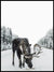 Vinterplakat av elg i snødekte omgivelser. Denne plakaten passer svært godt på en bildevegg sammen med våre andre vinterplakater.