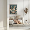 • Etter printing spennes lerretsduken på en kraftig blindramme. For de fleste formatene bruker vi en 40mm tykk ramme, slik at det oppnås en flott dybde-effekt når rammen henges på veggen. Deretter monterer vi på oppheng med stålvaier og kunstverket ditt kan henges rett på vegg.