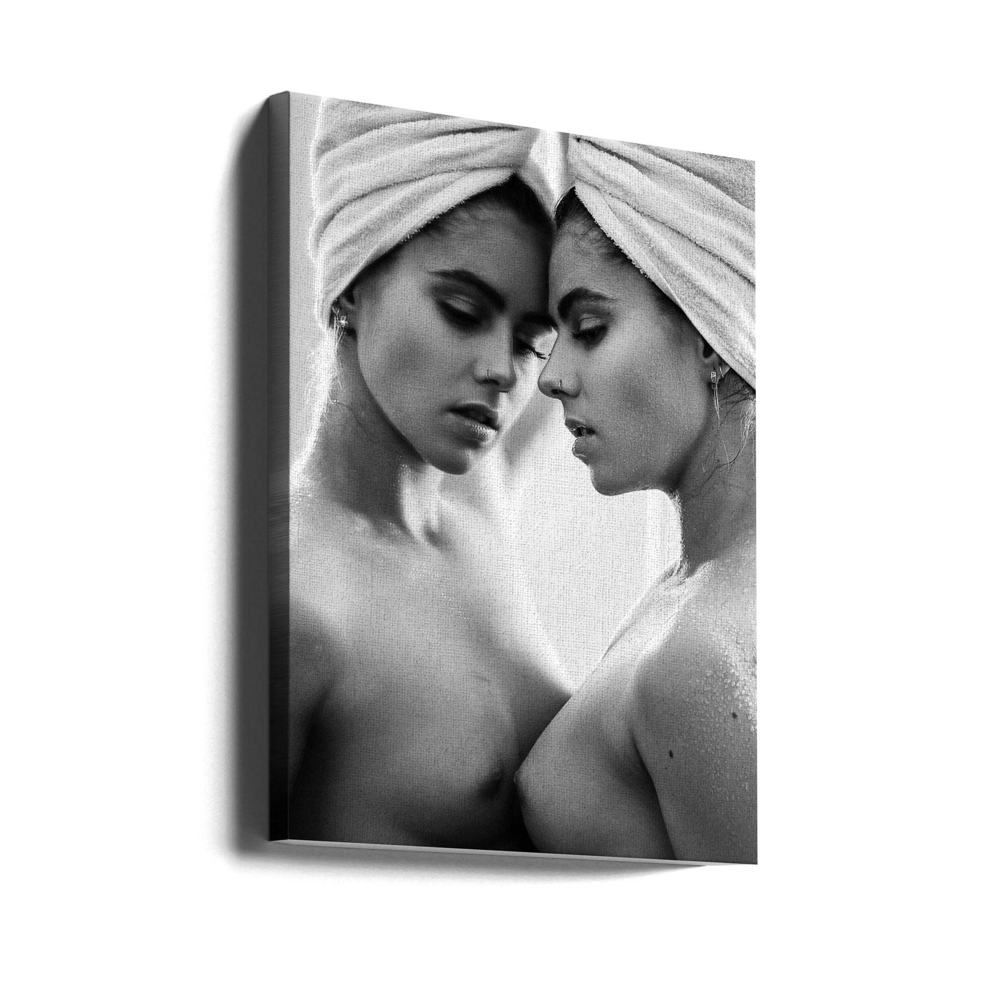 • Etter printing spennes lerretsduken på en kraftig blindramme. For de fleste formatene bruker vi en 40mm tykk ramme, slik at det oppnås en flott dybde-effekt når rammen henges på veggen. Deretter monterer vi på oppheng med stålvaier og kunstverket ditt kan henges rett på vegg.