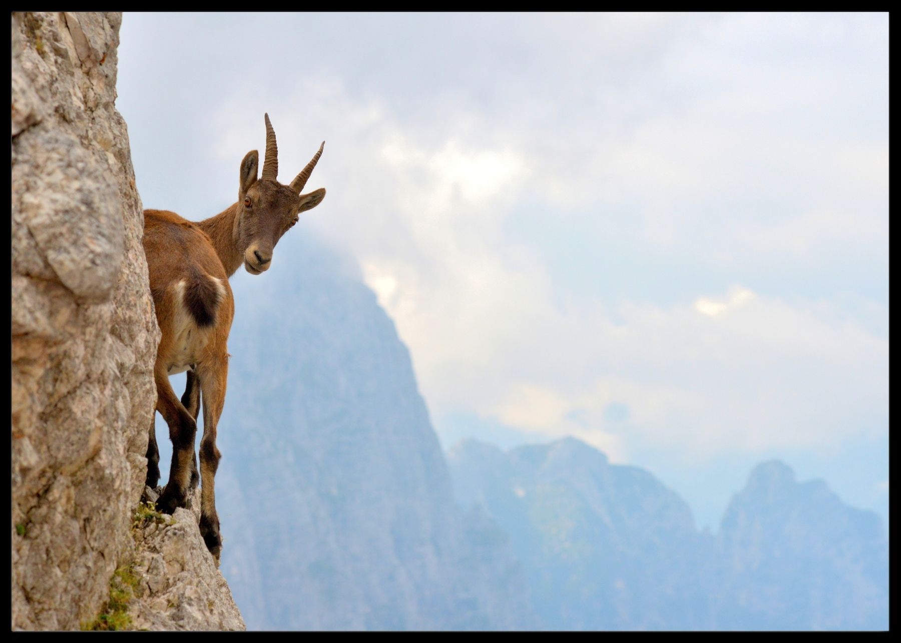 Plakat av en luftig fjellgeit i et fjell landskap i Italia.