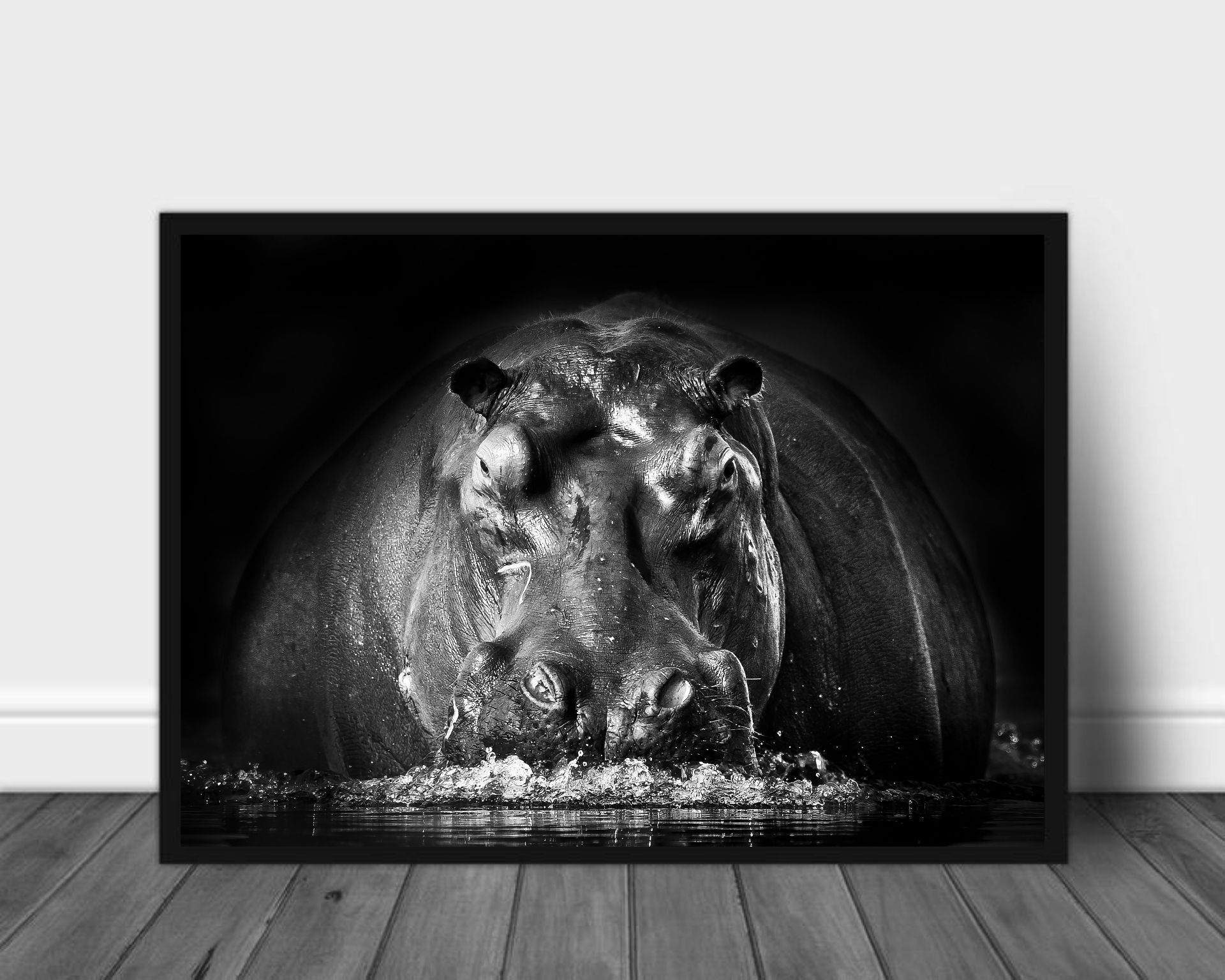 Plakat av et nærbilde av en flott flodhest .