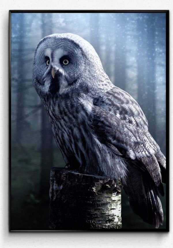 Plakat av en flott lappugle, de finner vi i de nordligste områdene av Norge.