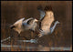 Plakat av flamingoer i en sjø med krystallklart vann, blå himmel og måker som svever over. Fantastisk farger og stemning.