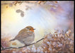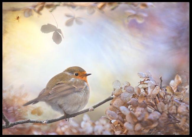 Plakat av en flott rødstrupe i nydelige omgivelser. Også en av de vanligste fuglene i Norge