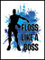 Denne plakaten spiller på uttrykket "Floss Like A Boss" fra spillet Fortnite og blir garantert populær til ungdommen! Den er laget med et stilig design som ser ut som blå spraymaling.