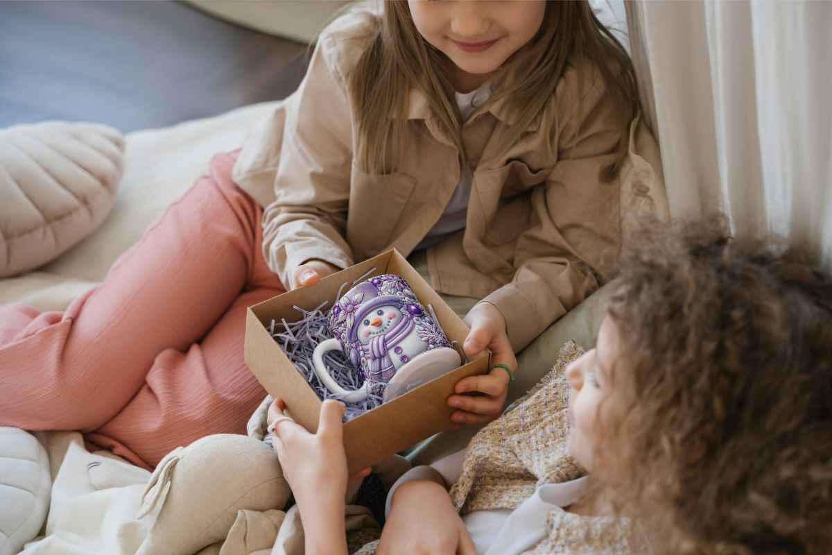 Et fint julekrus med snømann hvor designet har en stilig 3D-effekt.