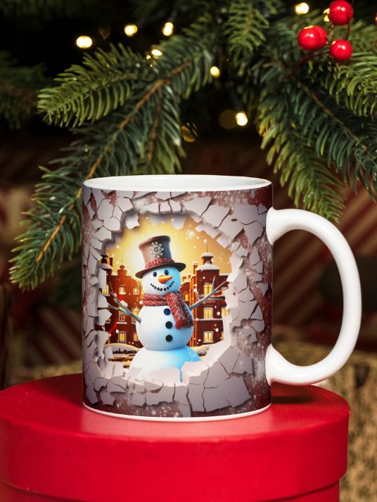 Et fint julekrus med snømann hvor designet har en stilig 3D-effekt.