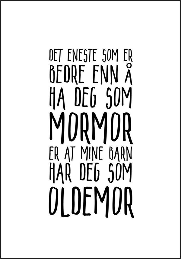 «Det eneste som er bedre enn å ha deg som MORMOR er at mine barn har deg som OLDEMOR».