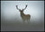 Plakat av en majestetisk kronhjort, i tett tåke.