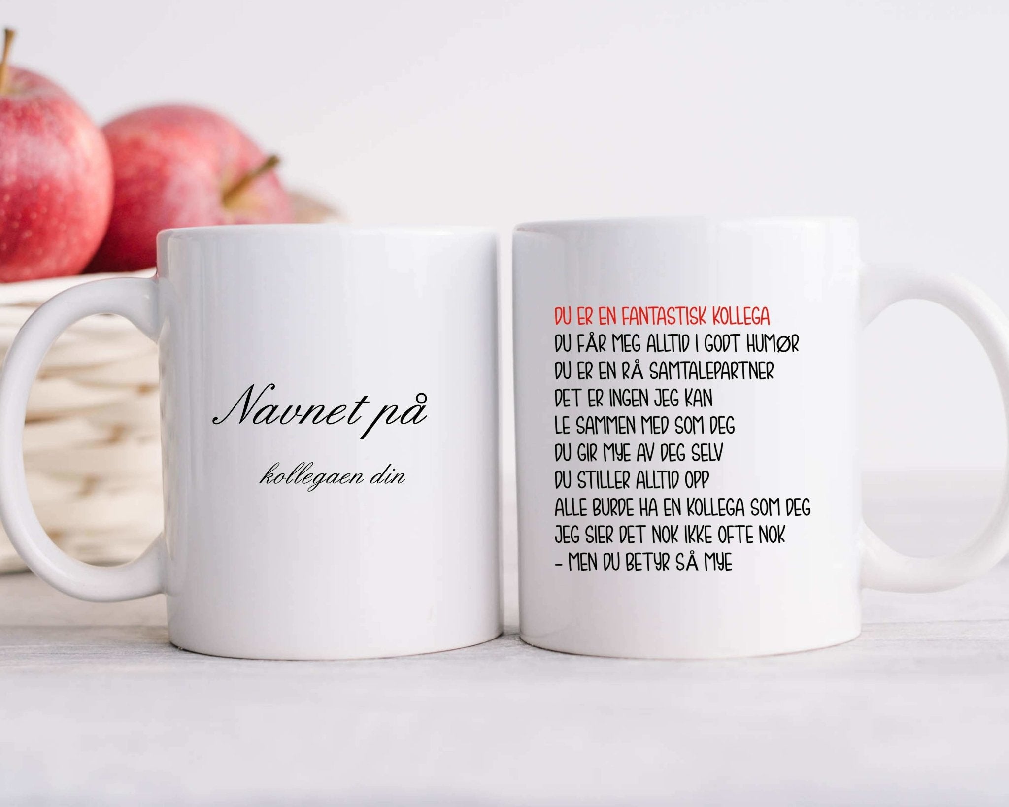 En koselig kopp til en god kollega. Du skriver selv inn hvilket navn som skal stå på koppen.