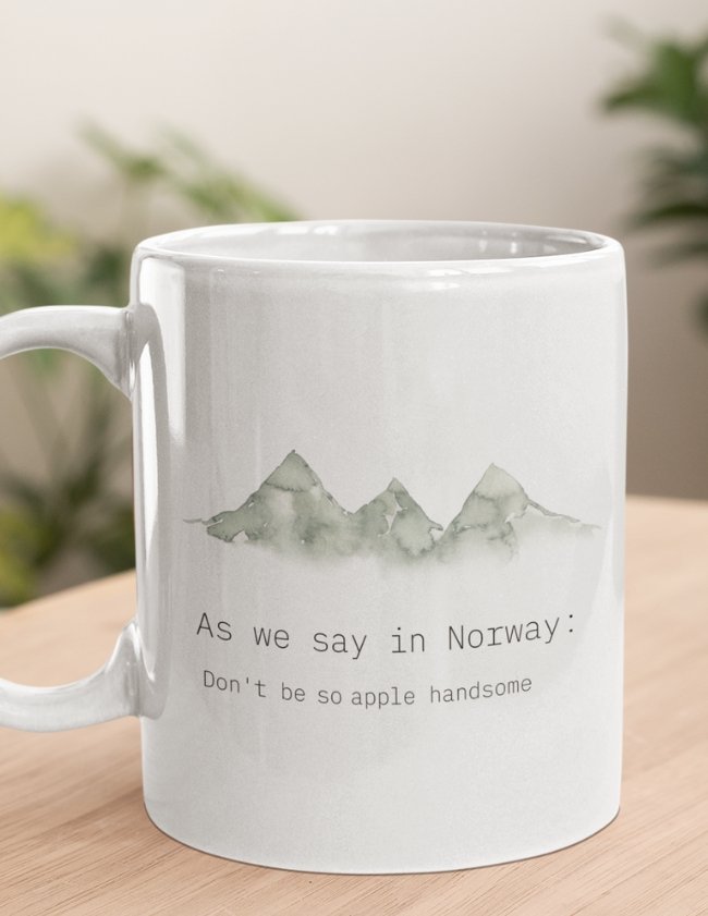 Kruset er trykket med samme motiv og tekst på begge sider.