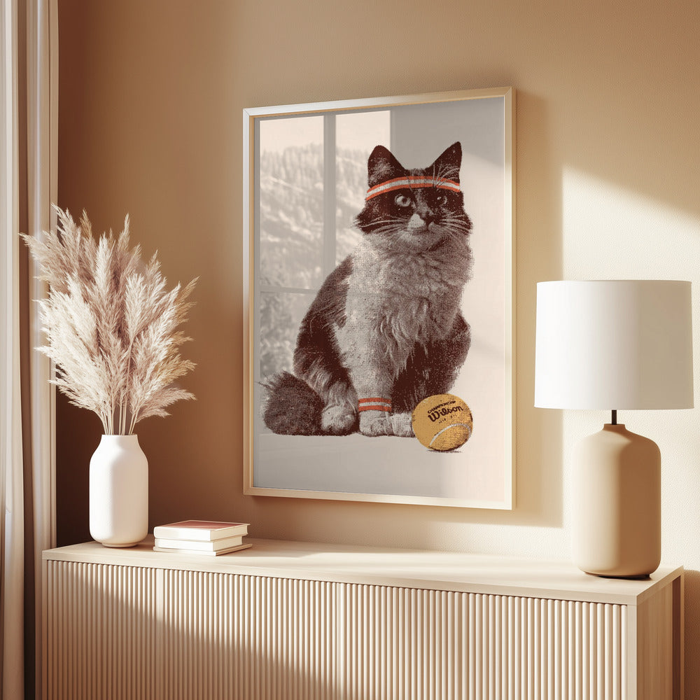 • Etter printing spennes lerretsduken på en kraftig blindramme. For de fleste formatene bruker vi en 40mm tykk ramme, slik at det oppnås en flott dybde-effekt når rammen henges på veggen. Deretter monterer vi på oppheng med stålvaier og kunstverket ditt kan henges rett på vegg.