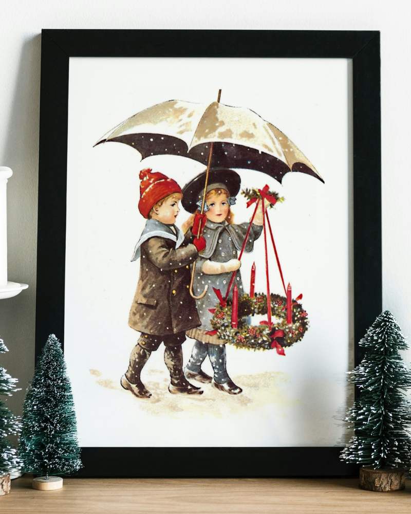 Barn med julekrans - Retro juleplakat - Jenny Nystrøm
