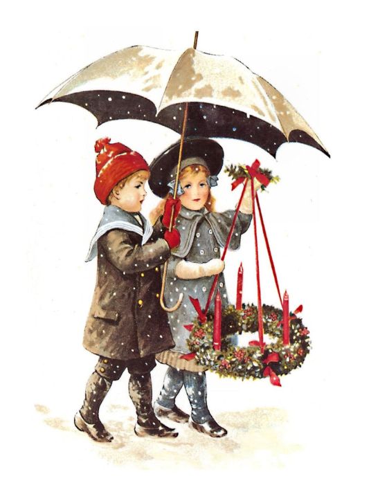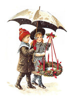 En klassiker av et julemotiv som er laget av den svenske kunstneren Jenny Nystrøm. Hun er av mange regnet som "moren av julekort" i Norden og du kjenner nok igjen motivene hennes.