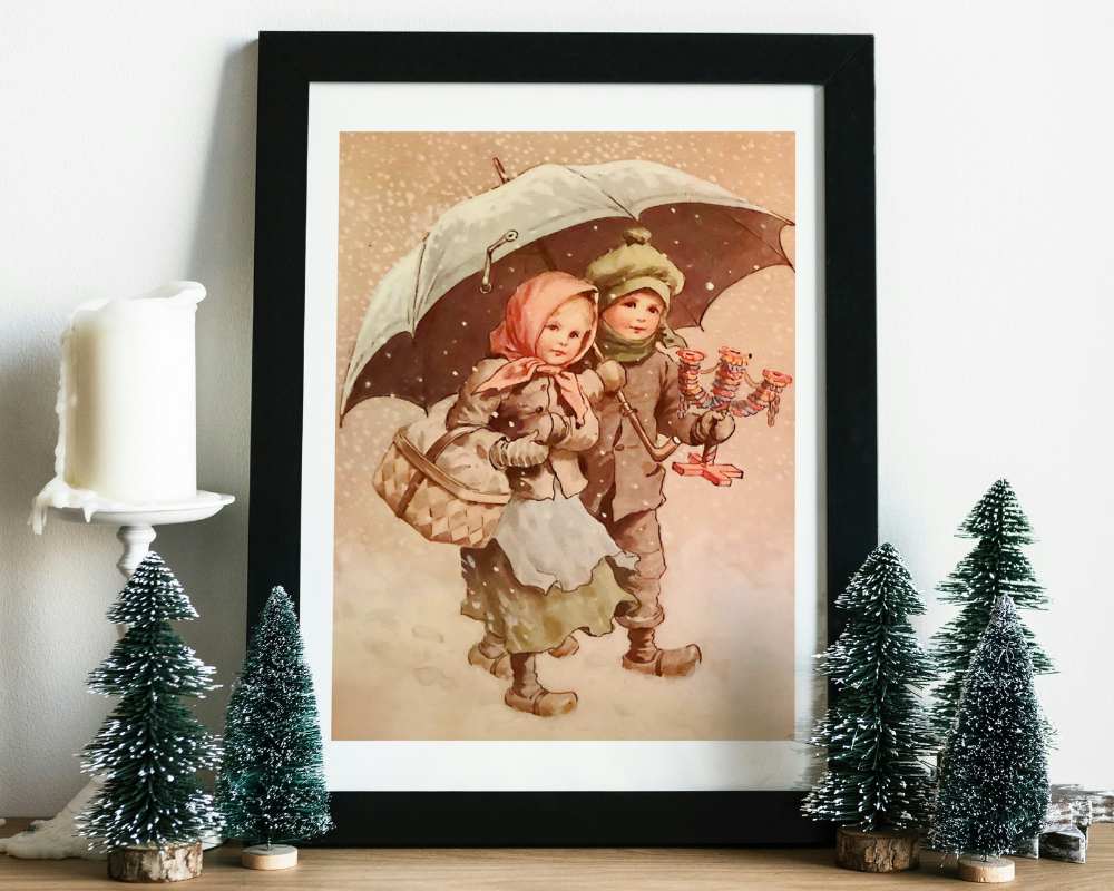Barn på juletur - Retro juleplakat - Jenny Nystrøm