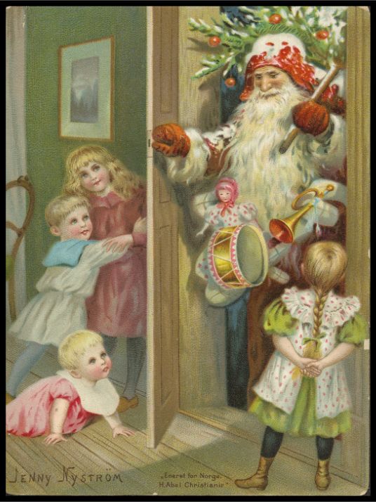 En klassiker av et julemotiv som er laget av den svenske kunstneren Jenny Nystrøm. Hun er av mange regnet som "moren av julekort" i Norden og du kjenner nok igjen motivene hennes.
